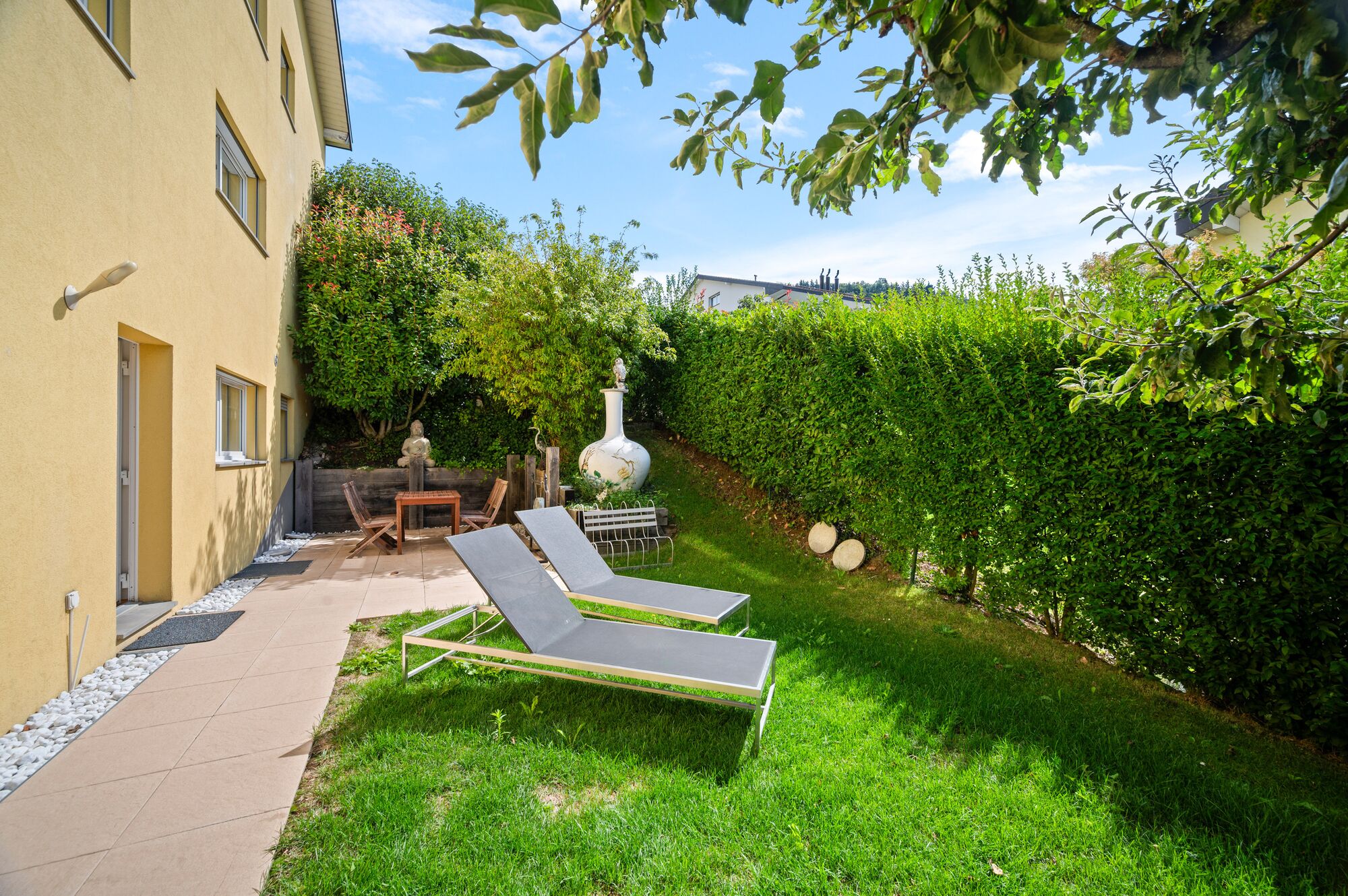 Les coûts liés à l’installation d’une pompe à chaleur ainsi que de panneaux photovoltaïques ont déjà été calculés, offrant de belles perspectives d’optimisation énergétique. La maison bénéficie en outre d’une forme juridique en propriété individuelle et non en PPE, garantissant une indépendance dans sa gestion.