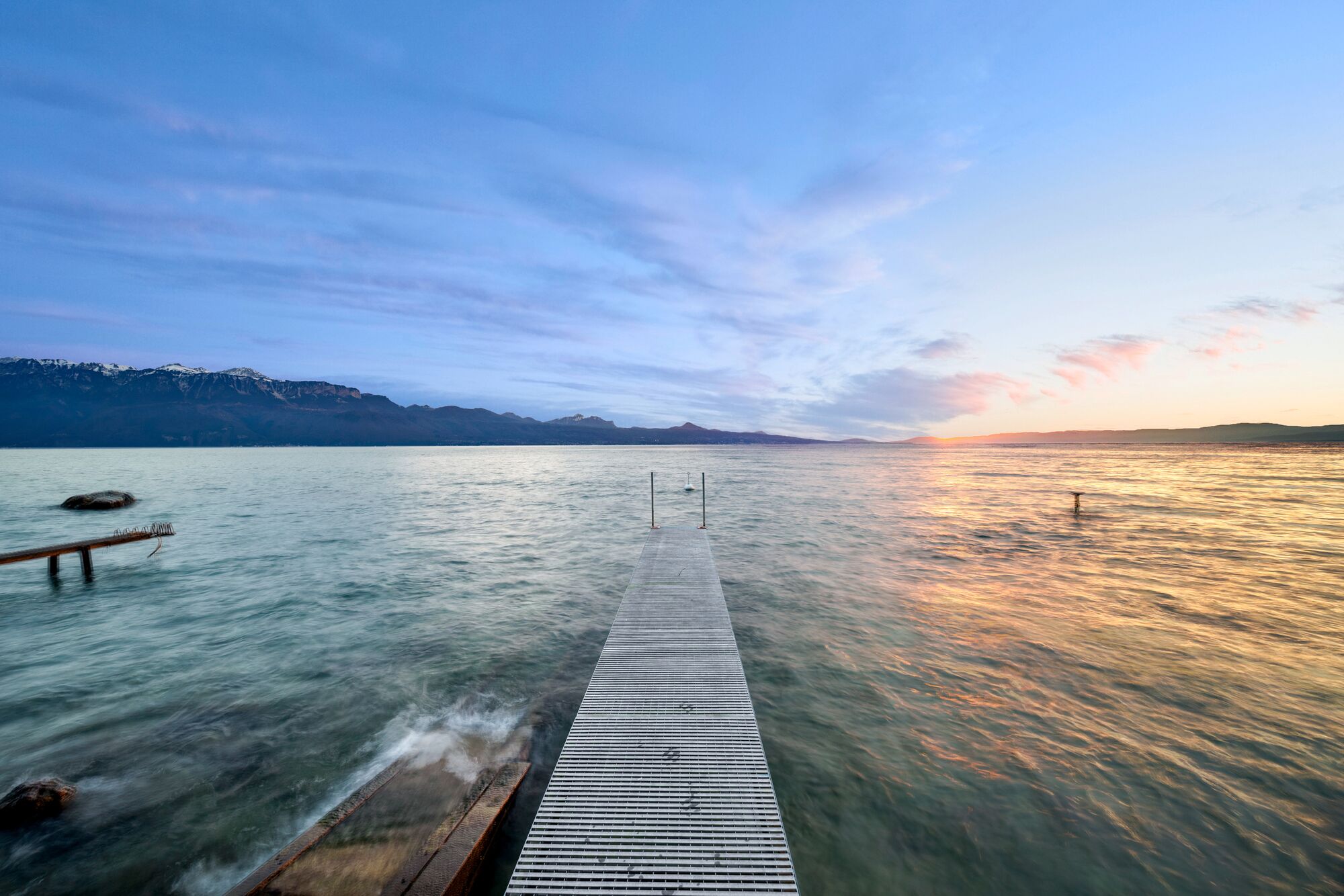Construite en 2023, cette propriété pieds dans l’eau offre un accès direct au Léman grâce à son ponton privé, sa place d’amarrage et son couvert à bateau. Les vues sur le lac et les montagnes confèrent à cette maison un cadre privilégié, rare dans la région.