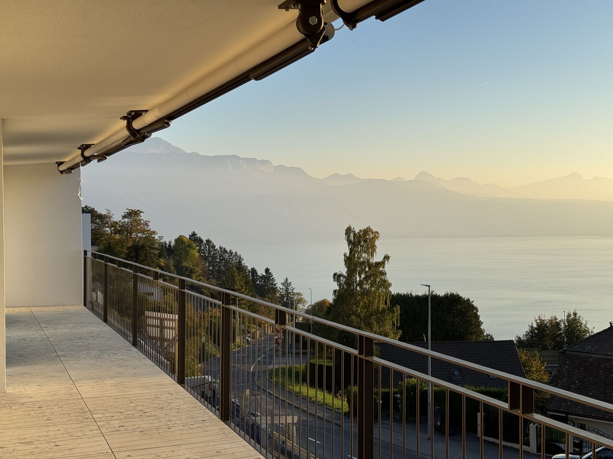 Ces logements très qualitatifs, deux en rez-de-jardin et deux en attique, sont nichés au coeur d’un cadre verdoyant et offrent une vue somptueuse sur les vignobles du Lavaux, le lac Léman et les Alpes.