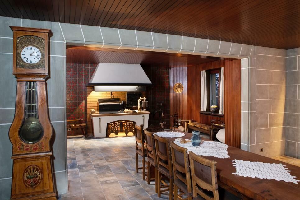 Les étages accueillent dix chambres à coucher, sept salles d’eau, un vaste dressing, ainsi que des espaces de vie complémentaires tels qu’un bar et une rôtisserie.