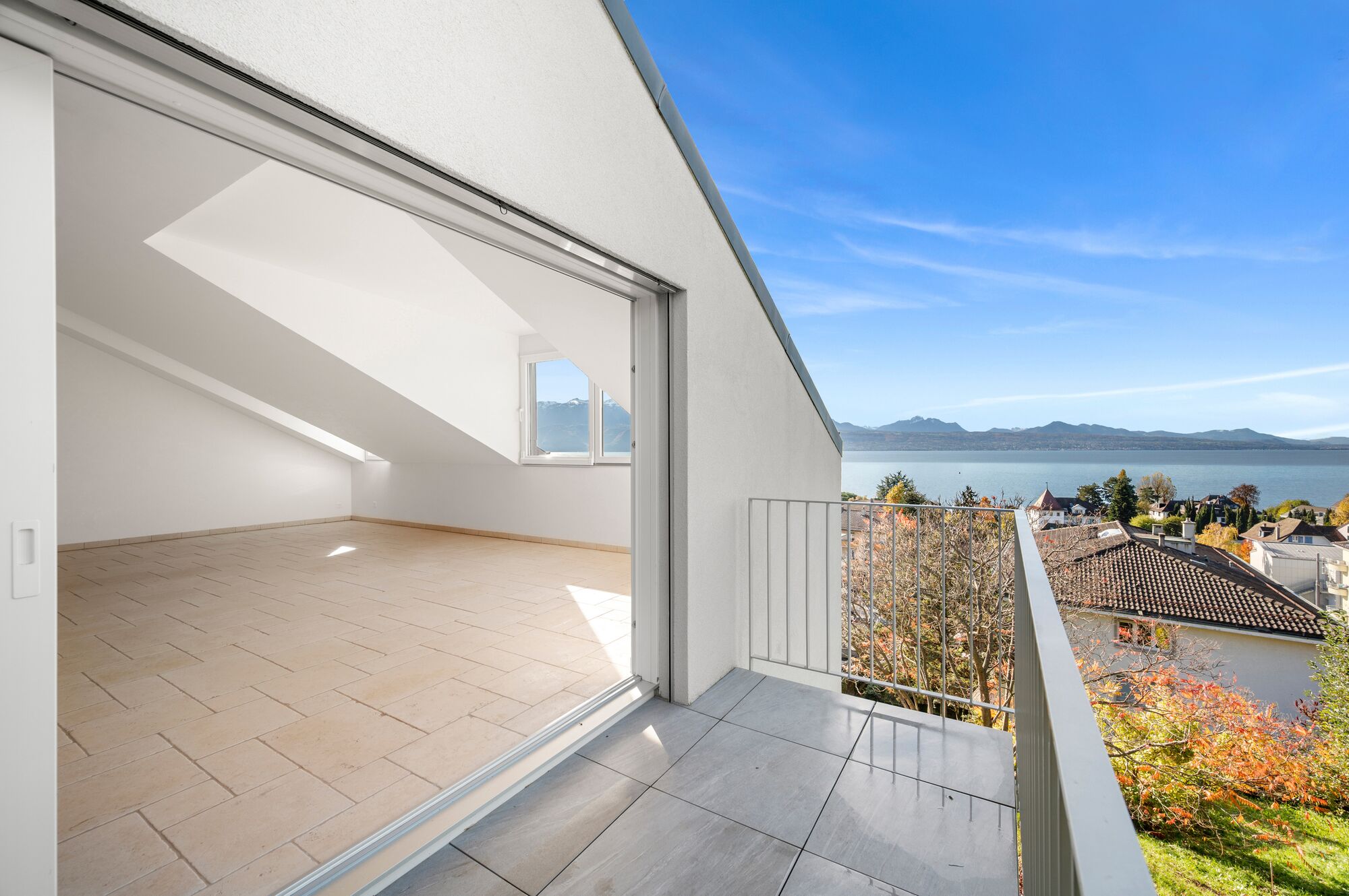 Sa proximité du bord du lac et des vignobles confère à ce lieu un charme unique. Cette maison bénéficie d’une vue panoramique sur le lac Léman et les montagnes et dispose également d’une très bonne intimité, sans vis-à-vis majeur. La proximité de la ligne de chemin de fer n’a pas d’impact visuel depuis la maison et son impact sonore est, à notre avis, extrêmement limité grâce aux vitrages isolants et aux ouvertures principales donnant à l’est, au sud et à l’ouest.