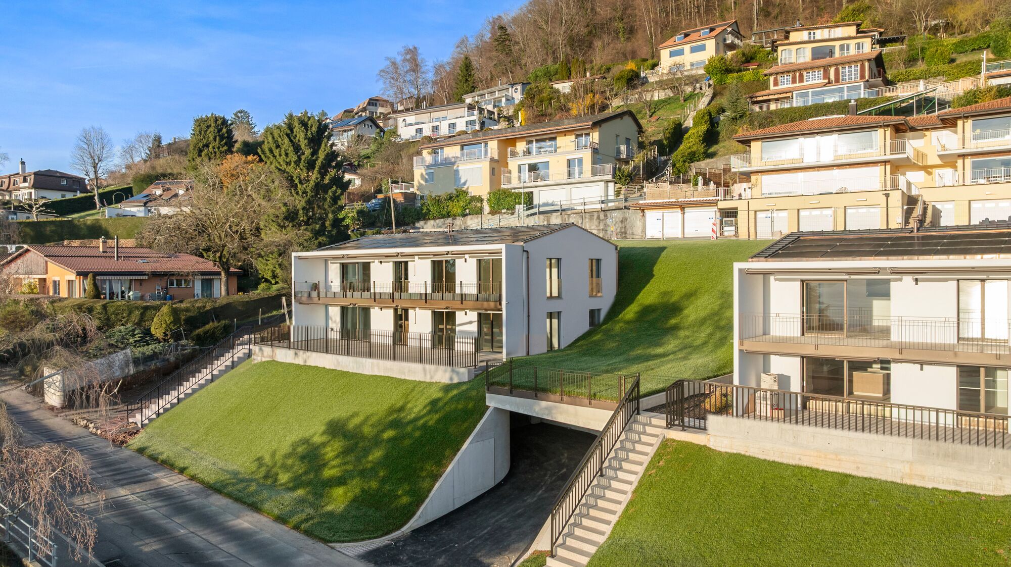 Located in a small new condominium of 4 lots, divided into two separate buildings of two apartments each, this garden-level 4.5-room apartment enjoys a verdant environment and a privileged location with unobstructed views of the Lavaux vineyards, Lake Geneva and the Alps.