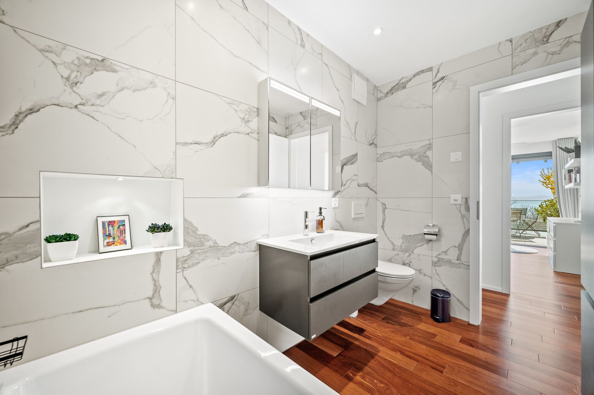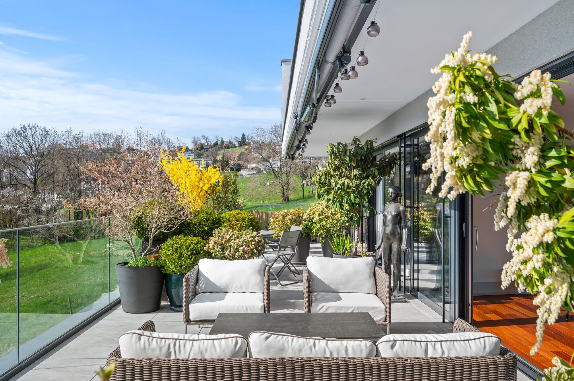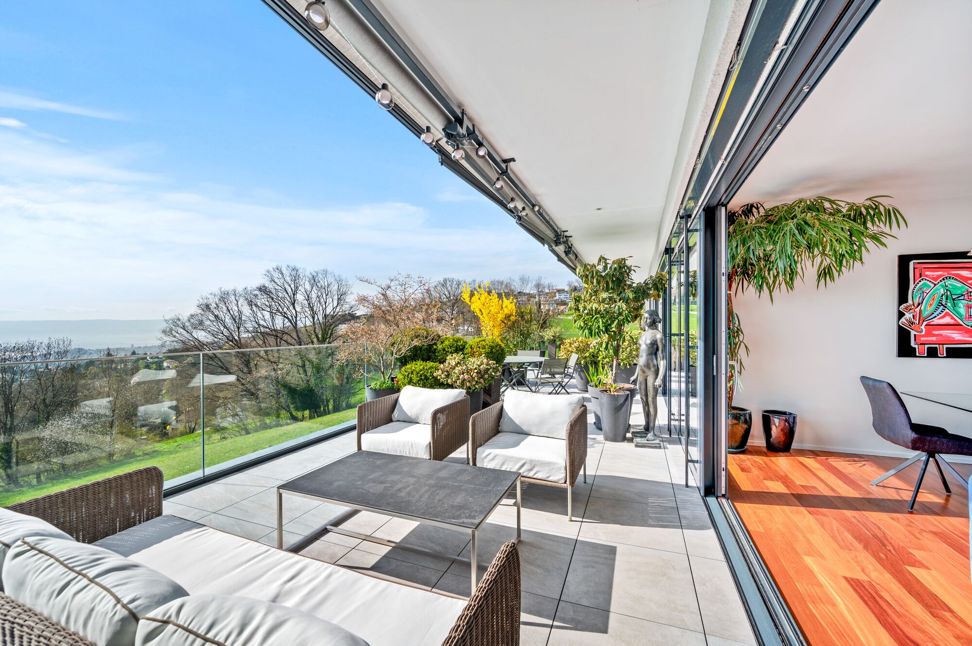 - A vast living and dining area with direct access to a terrace of over 65 m², a true extension of the living space
