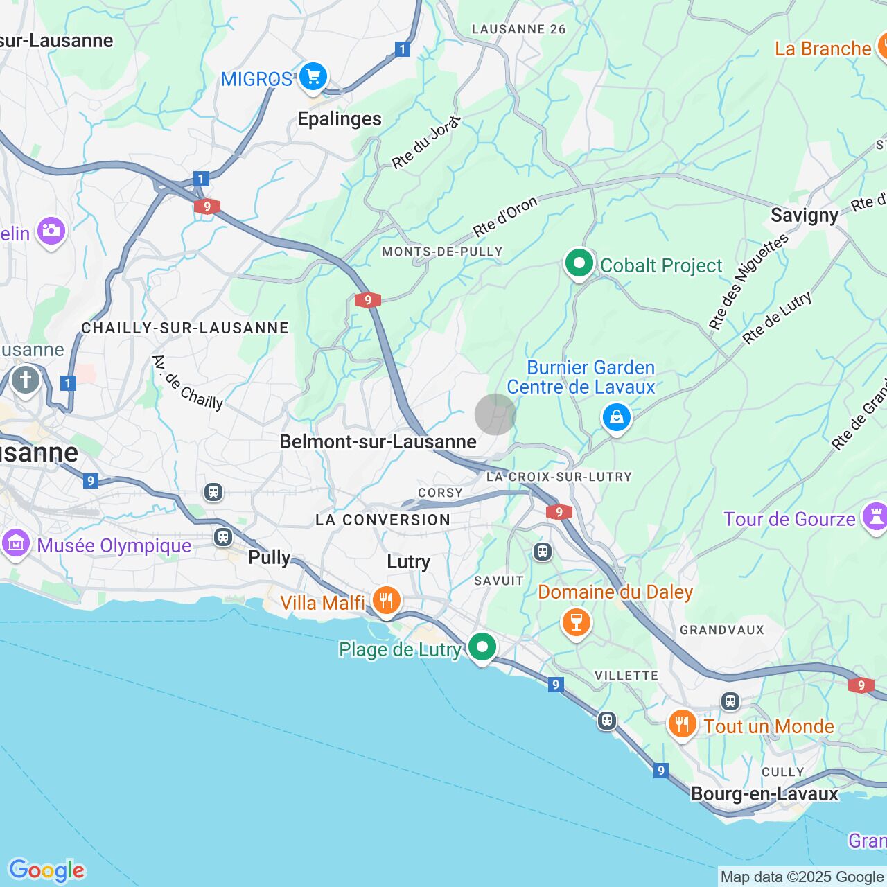 - Shopping centers accessible in less than 10 minutes (Migros La Conversion, Coop Lutry, Migros Pully)